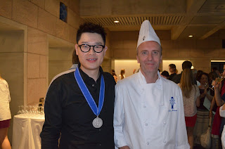 Group A Exam: When I was on the bus, Jason texted us from school saying there was no powder there while Group A was having the final exam in the kitchen! Sorry to Group A! You guys had earthquake on sugar exam, and now no power for final exam?! What a curse! What's next? I went to school to meet up with Jason in the student lounge. Then we went up to 2nd floor, we saw Chef Eric Jaouan bringing cakes to 2A. Chef Eric said they were almost done, 'cos the room was getting hot, things would melt, so they had to present whatever they had as soon as possible. I saw Chef Hervé Chabert judging the products. Jason and I waited until they finished. They all did well. I'm sure everyone would pass, and meet on Friday for the graduation. I can't believe it's over!